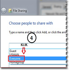 Langkah ke 4 (klik tanda panah kecil dekat tombol Add lalu pilih Everyone)