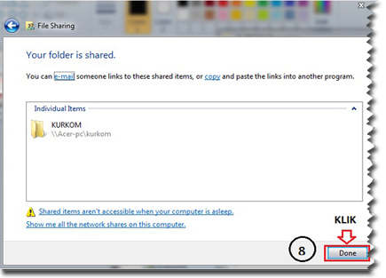 6). Sharing folder/file/Aplikasi yang nantinya bisa diakses oleh setiap komputer